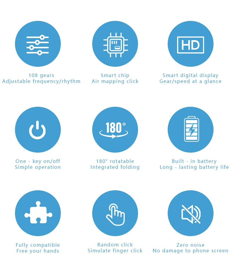 This screen auto clicker is a simple, hands-free tool designed to physically tap smartphone screens for repetitive tasks. Commonly used for mobile games, live streaming interactions, video watching, and app demonstrations, it helps reduce finger fatigue during repeated screen tapping.